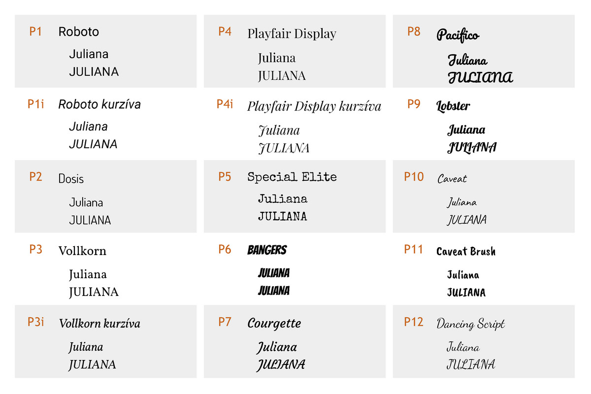 Pokud si přejete jiný text a místo Juliana mít značení Jula, Julda, Julča ... nebo jiný, například "spisovatelka Julianka" využijte produkt pro Vlastní text. Tento produkt nabízí rozšířené možnosti a je výhodný i pro objednávku značení více jmen nebo více odlišných textů.