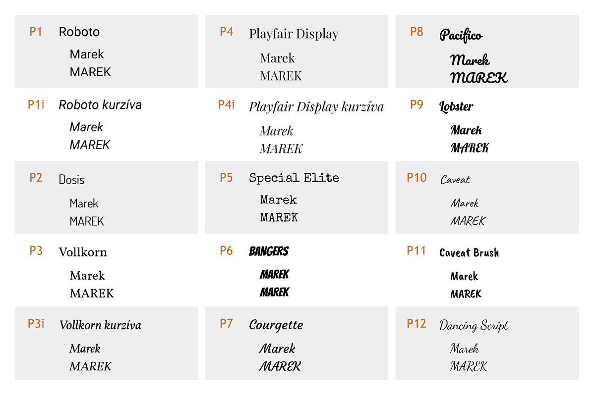 Pokud si přejete jiný text a místo Marek mít značení Mareček, Mark, Marouš ... nebo jiný, například "spisovatel Mára" využijte produkt pro Vlastní text. Tento produkt nabízí rozšířené možnosti a je výhodný i pro objednávku značení více jmen nebo více odlišných textů.