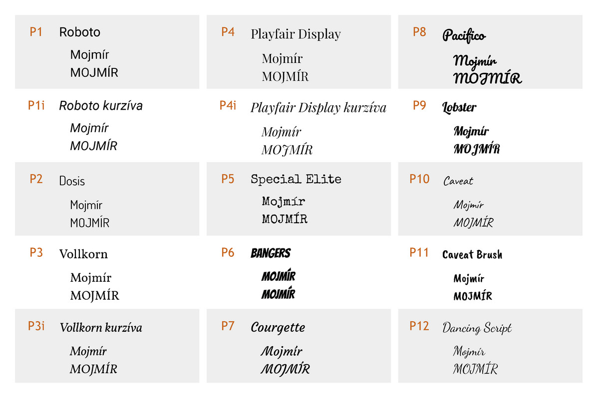 Pro volbu jiného jména a příslušných produktů je k dispozici Jmenný seznam.